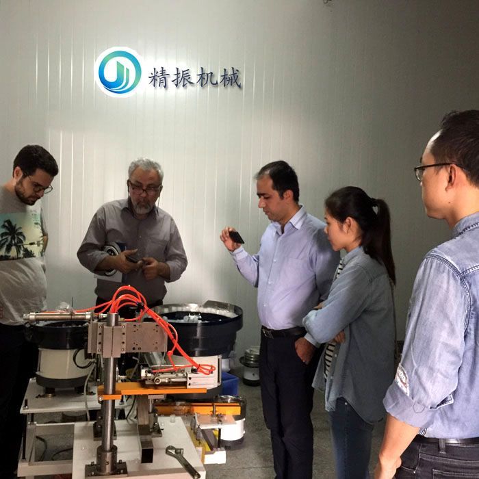 ?? 伊朗公司駐廣州分公司的3位外籍高層2016年11月8日再次找到我們訂購批量振動盤,繼2016年9月份簽訂50臺后再一次簽訂了30臺多種工件產品震動盤,精振震動盤一直以來受到客戶的親睞,簡單輕便的外形,低成本的造價,不斷改良高效運轉,成了精振振動盤在市場中占有自己的一席之地重要因素之一。下面一起來看看怎么商討出口貿易事宜合作吧。